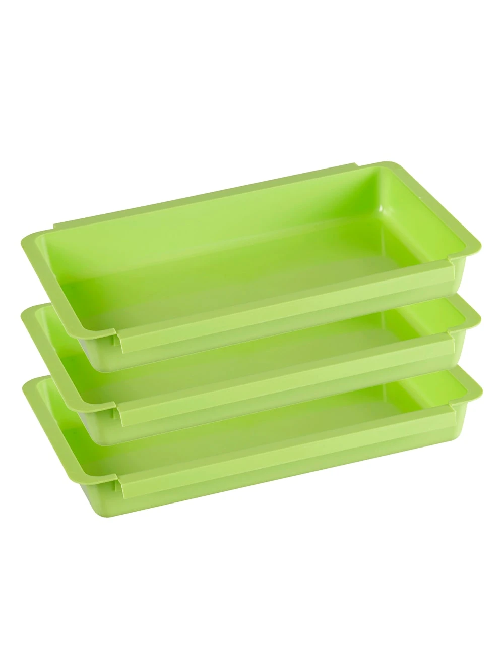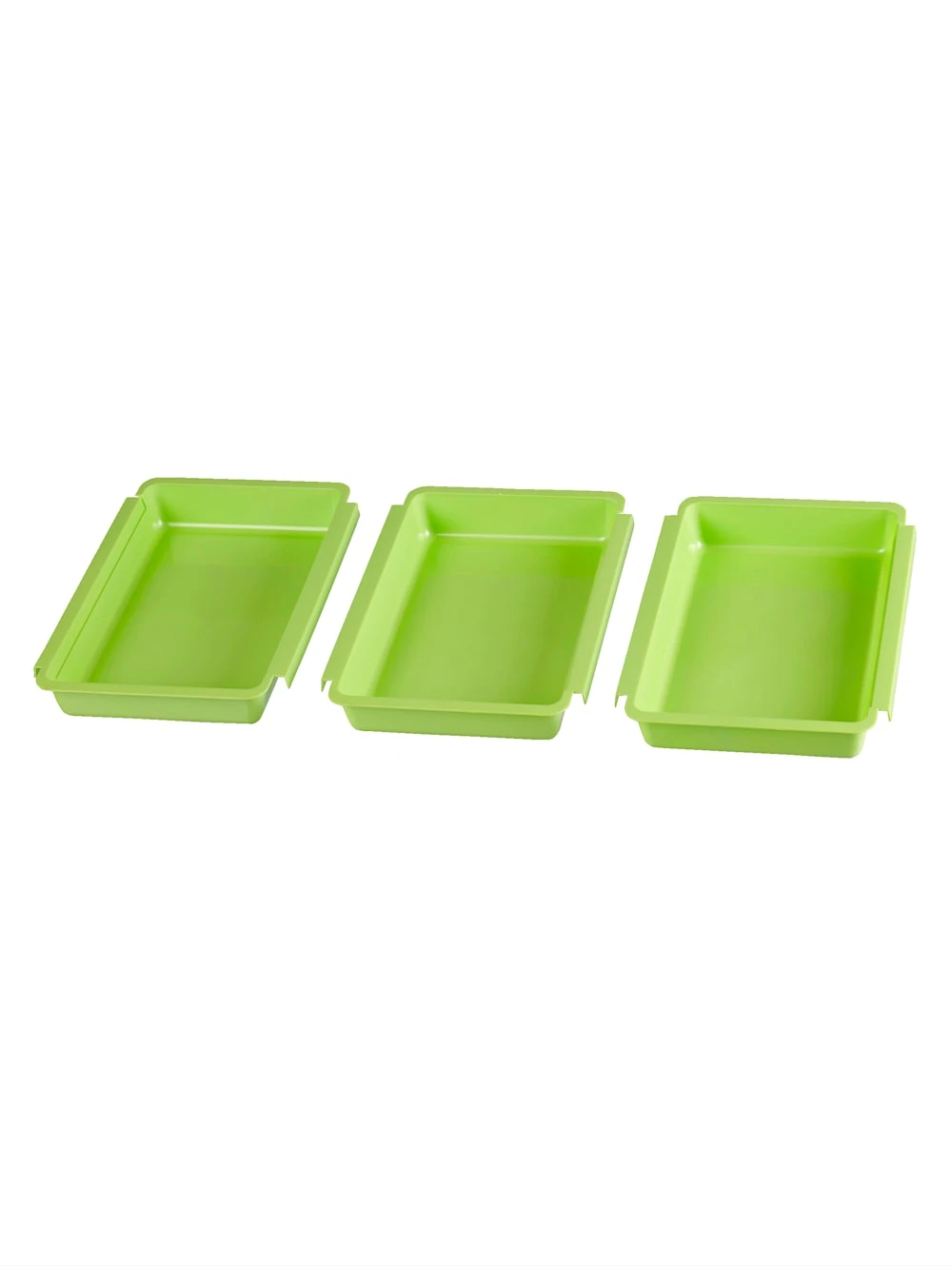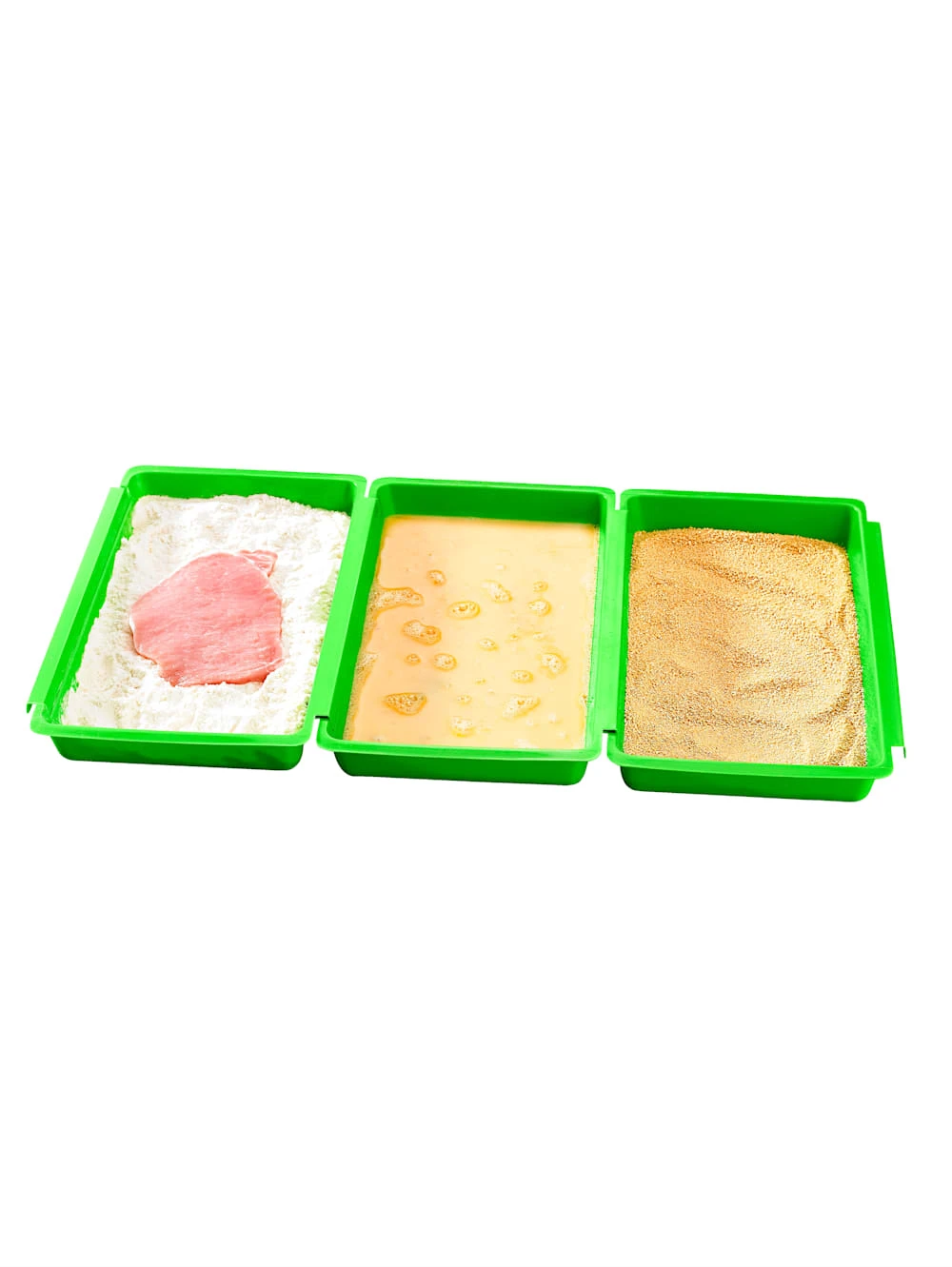 3tlg. Panier-Set für eine perfekte Panade ohne ‚Kleckerei‘. Jetzt ist das Panieren von Fleisch und Fisch noch einfacher, denn die praktischen Schalen lassen sich nahtlos aneinander hängen. So geht beim Wechsel von einer Schale zur anderen nichts mehr daneben und die Arbeitsplatte bleibt sauber. Aus pflegeleichtem Kunststoff. Leicht zu reinigen – spülmaschinengeeignet. Bei Nichtgebrauch platzsparend ineinander stapelbar. Fassungsvermögen je Schale 800 ml. Maße je LxBxH ca.: 27 x 17 x 3,5 cm.