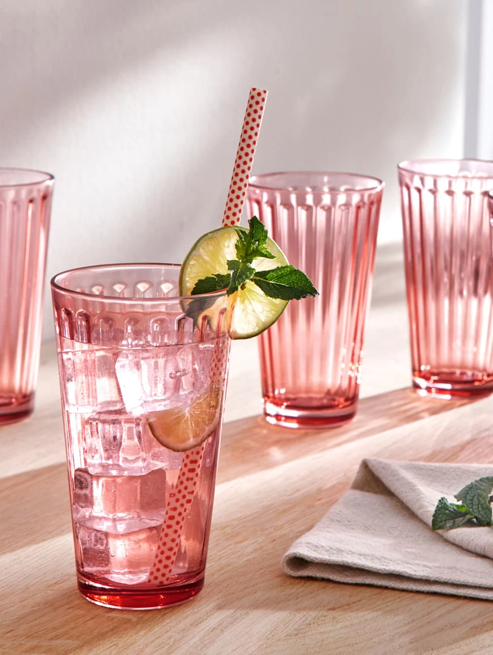 6er-Set Longdrinkgläser ‚Lawe‘. Diese schlanken Longdrinkgläser von Ritzenhoff & Breker präsentieren sich in einem modernen Design. Durch das hochwertige Relief mit Längsstreifen fallen die farbigen Gläser im praktischen 6er-Set sofort ins Auge und haben eine tolle Haptik. Die Gläser eignen sich optimal für eine fein gedeckte Tafel, sind aber auch alltagstauglich. Sie sind ideal für alkoholische Getränke, Mineralwasser oder Fruchtsäfte. Dezent gefärbtes Qualitätsglas aus europäischer Fertigung. Spüllmaschinengeeignet. Fassungsvermögen 400 ml. Maße HxØ ca.: 14 x 8 cm.