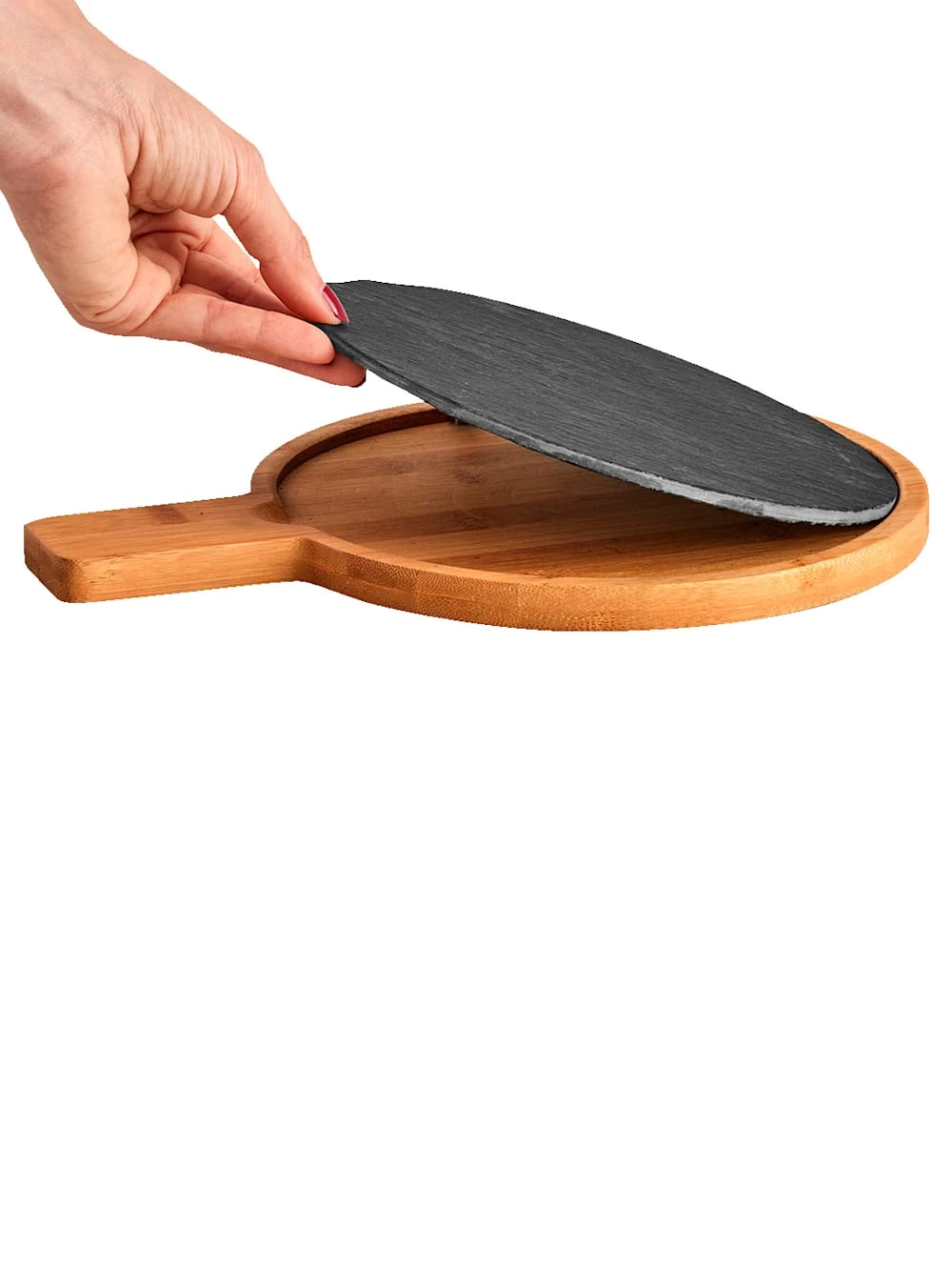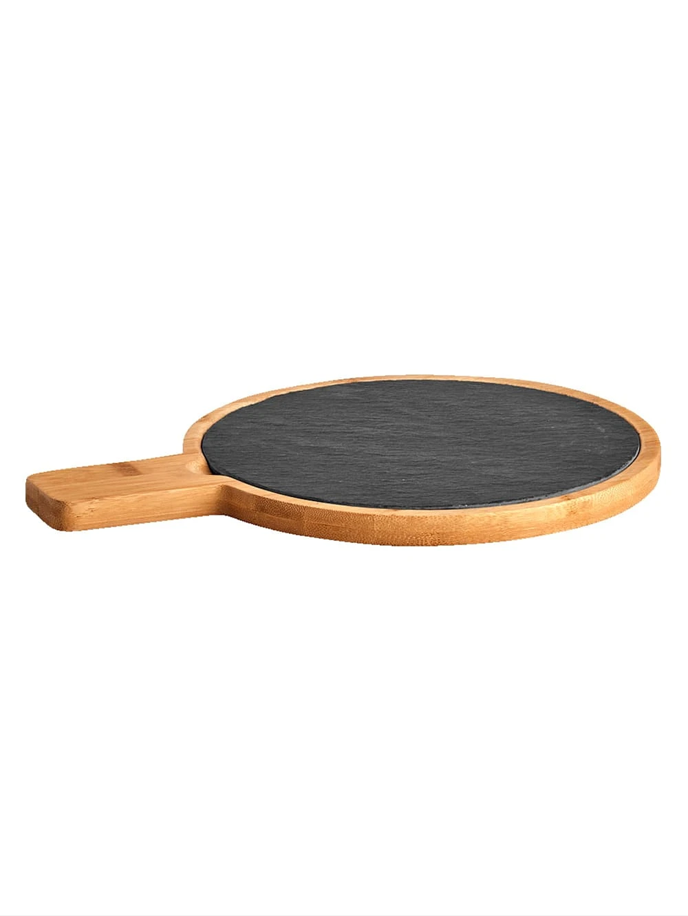 Bambus Schneide-/Servierbrett Mit Schieferplatte & Griff, Rund