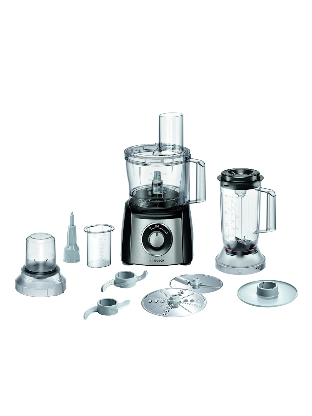 Küchenmaschine MultiTalent 3 Plus 900W MCM3PM386 schwarz. MultiTalent 3 – der kompakte und vielseitige Küchenassistent mit mehr als 50 Funktionen macht Kochen und Backen zum Kinderspiel. Zerkleinern, Reiben, Mixen und vieles mehr – dank vielfältigem Zubehör wie Edelstahl-Universalmesser und MultiLevel6 Messer. Transparente Kunststoffschüssel: 2,3 l Inhalt mit transparentem Deckel, Trichter und Stopfer. Intelligente Werkzeugerkennung: stellt automatisch die richtige Geschwindigkeit für jedes Zubehör ein, um perfekte Ergebnisse zu erzielen. SmartStorage: Zubehör lässt sich in der Schüssel verstauen und ist damit stets schnell zur Hand.