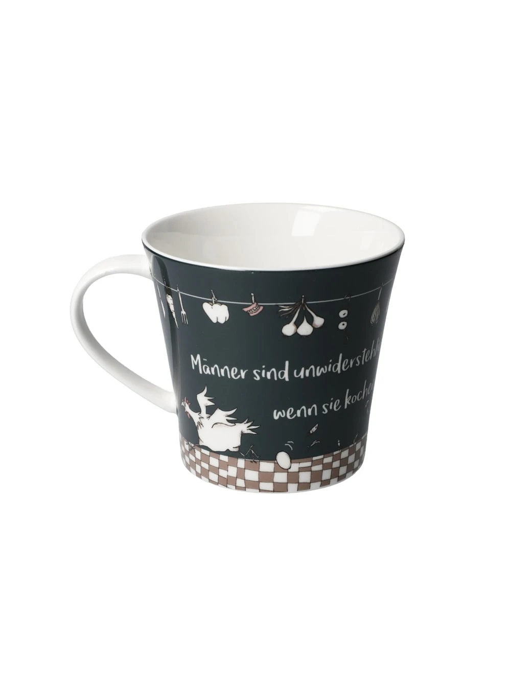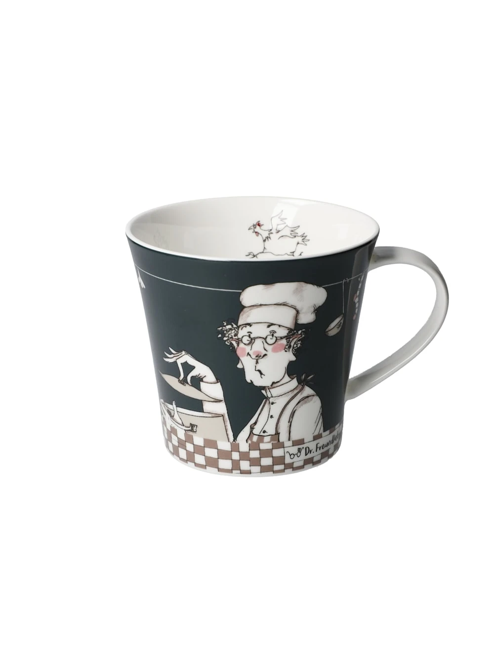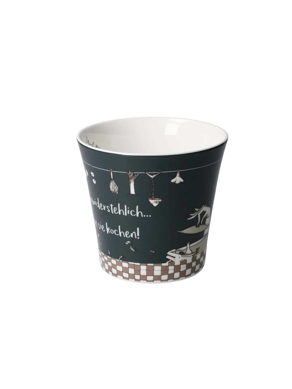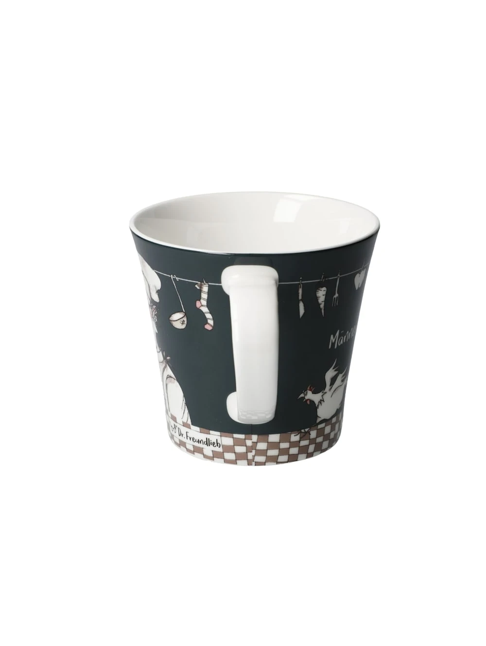 Tassen mit witzigen Sprüchen und die „Allwettertasse“, aus der man auch bei strömenden Regen seinen Kaffee genießen kann, lassen uns den Alltag mit einem Lächeln genießen.Coffee-/Tea Mug – „Männer sind unwiderstehlich, wenn sie kochen“ Der Spruch befindet sich auf der Rückseite der Tasse. Spülmaschinengeeignet, doch um die Brillanz der Farben zu schonen, ist Spülen per Hand empfehlenswert.Vor einigen Jahren fand Barbara Freundlieb, eine gebürtige Rheinländerin, den Weg zur Malerei und Illustration. Nach der Familiengründung in Krefeld begann die promovierte Biologin ihre künstlerische Ausbildung an privaten Kunstakademien. Sie veranstaltet regelmäßig Ausstellungen, illustriert Bücher, Gedichte und bringt alles zu Papier, was ihr im Alltag so begegnet.