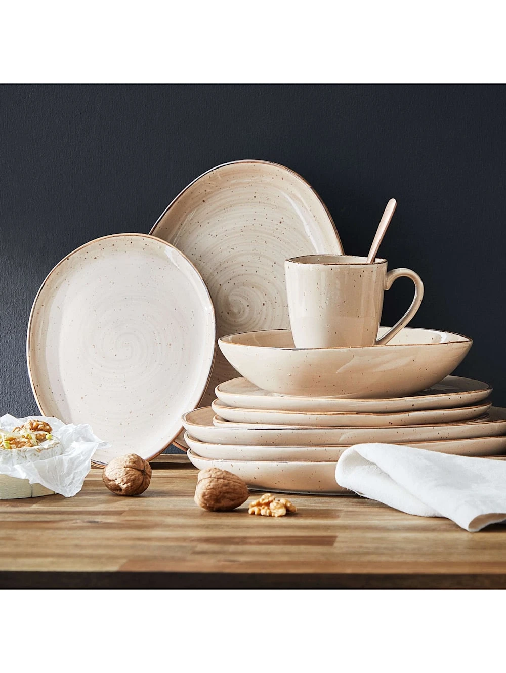 ¡que bonito! Der hochwertige Handmade Look des 16-teiligen Finca Geschirrsets aus Porzellan fällt sofort ins Auge. Kein Wunder: Die reaktive Glasur mit natürlichen Sprenkeln, die authentische Form und die Vintage Optik erinnern an echtes Handwerk, wie man es nur noch in alten Manufakturen findet. Damit ist Finca kein Geschirr „von der Stange“, sondern deckt Ihren Tisch mit individuellen Schmuck- und Sammlerstücken.