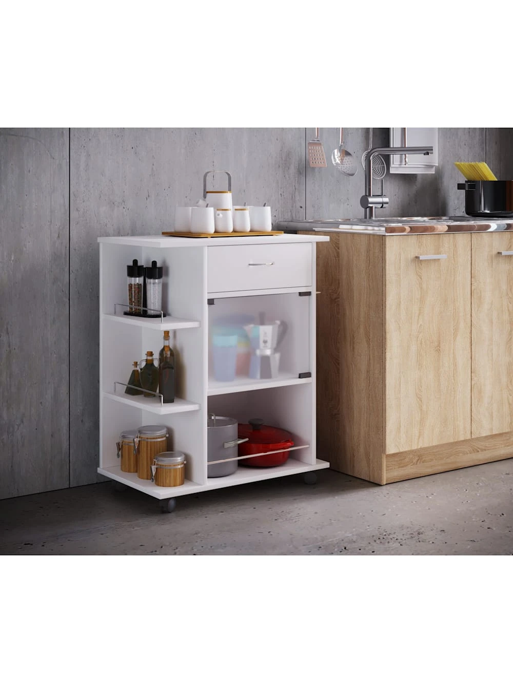 Highlights: – Vier offene Fächer – Ein Fach mit edler Mattglastür – Eine geräumige Schublade – Maße ca. H. 80 x B. 65 x T. 39 cm Der VCM Küchenwagen „Pocis“ in edler Optik passt sich beinahe jeder Küche an. Praktischer und geräumiger Küchenwagen für ausreichend Stauraum in Ihrer Küche. Die beschichtete Oberfläche macht diesen Schrank besonders pflegeleicht und unempfindlich gegen Feuchtigkeit. VCM hat sich seit den 70er-Jahren auf die Konstruktion, Produktion und Vertrieb von Möbeln mit einem fairen Preis/Leistungsverhältnis spezialisiert und damit bereits Millionen Haushalte verschönert.