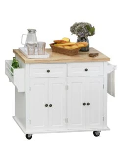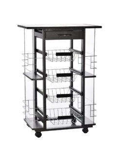 HOMCOM Küchenwagen Mit Verstellbaren Einlegeböden, Aus Massivem MDF-Holz Und Spanplatten