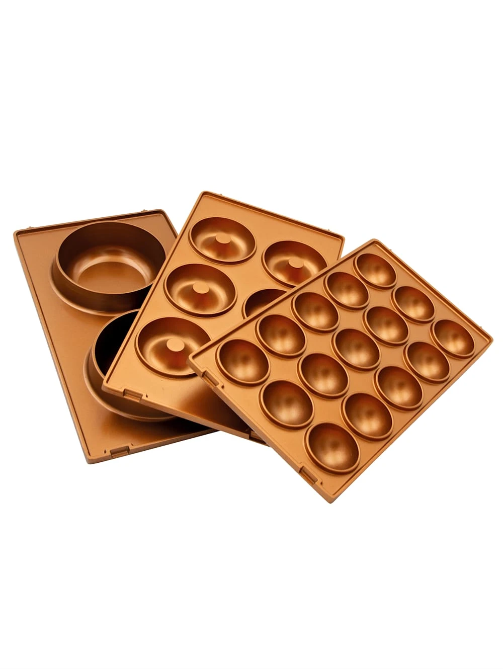 Livington 3tlg. Back-Einsatzplatten-Set ‚Flip Switch‘. Das passende Zubehör für den drehbaren Multifunktionsgrill ‚Flip Switch‘ für noch mehr Vielfalt. Bestehend aus Cake-Pop-Plattenset, Cake-Cup-Plattenset und Donut-Plattenset. Mit superstarker 2-Komponenten-Keramikbeschichtung mit Lotus-Effekt – kein Anhaften und leichte Reinigung.Material: Aluminium. Maße LxB ca.: 21,5 x 12 cm.