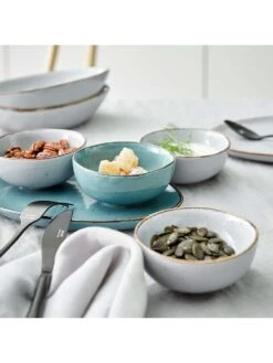 Mit unserer Geschirrserie Native im angesagten minimalistischen Design kommt der neue Trend auf den gedeckten Tisch! Die Schale im 4er-Set aus Steinzeug in der Farbe Weiß ist handgefertigt in Portugal und hat eine dünne und hochwertige Scherbe mit einer klaren Formgebung. Durch die reaktive Glasur mit kleinen Kristalleinschlüssen wird jedes Teil der Serie zu einem echten Unikat. Der unglasierte Boden, der das Rohmaterial zum Vorschein bringt, sorgt für einen formvollendeten Manufaktur-Look. Jedes Teil der Serie ist spülmaschinen- und mikrowellengeeignet.