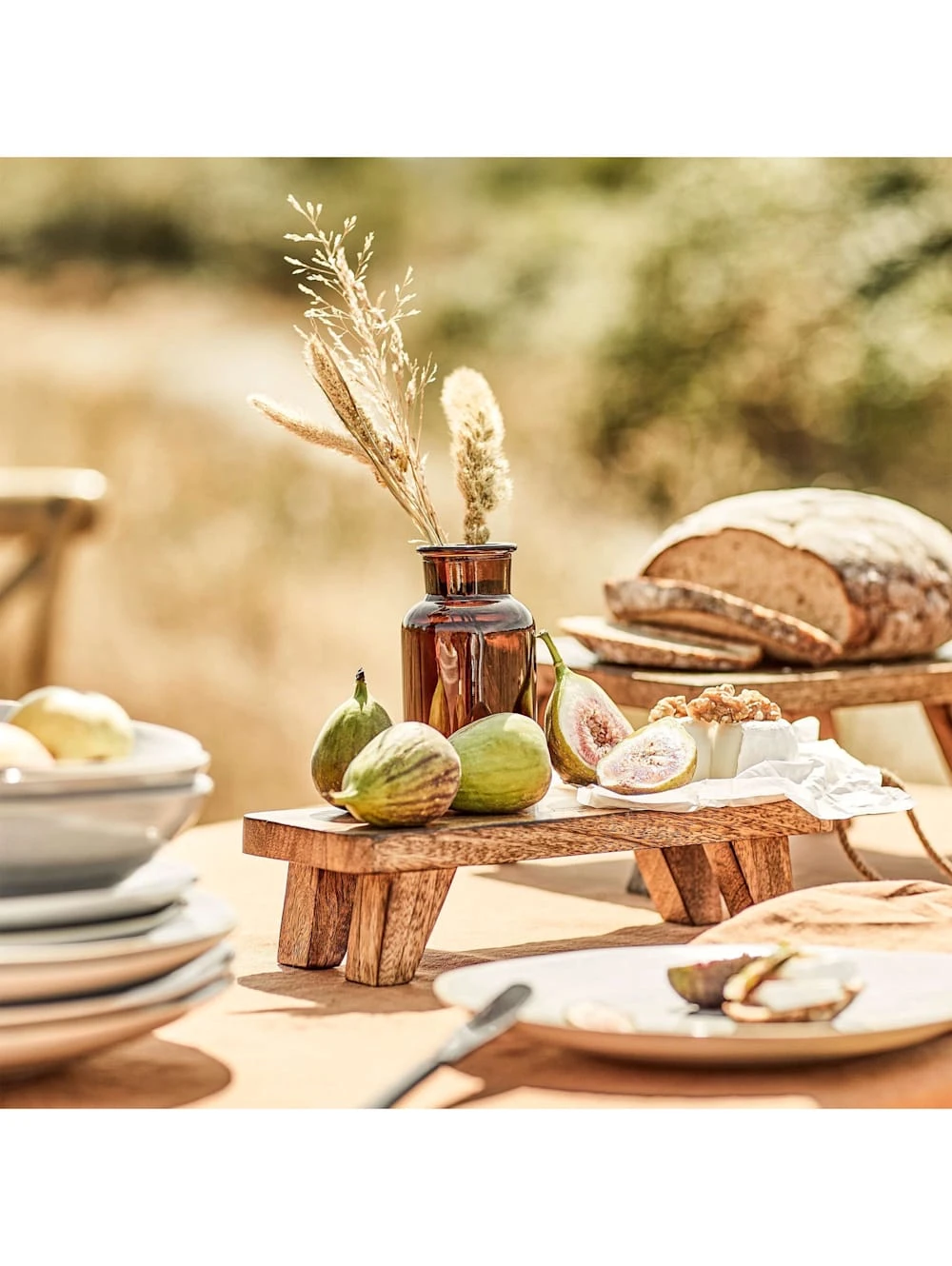 Sie finden, bei vielen Dekorationen ist Luft nach oben, und deshalb werden Sie mit dem On Stage Holzpodest kreativ. Mit diesem rustikalen Holzpodest aus natürlichem Mangoholz heben Sie z.B. Dippschalen auf dem gedeckten Tisch hervor, oder Sie machen Windlichter und Vasen zu einem erhabenen Highlight. Da das On Stage Holzpodest mit Griffen und Füßen in den drei Größen erhältlich ist, können Sie auch unterschiedlich große Holzpodeste gemeinsam arrangieren, so zaubern Sie ausgefallene Arrangements. Lassen Sie einfach Ihren guten Ideen freien Lauf.