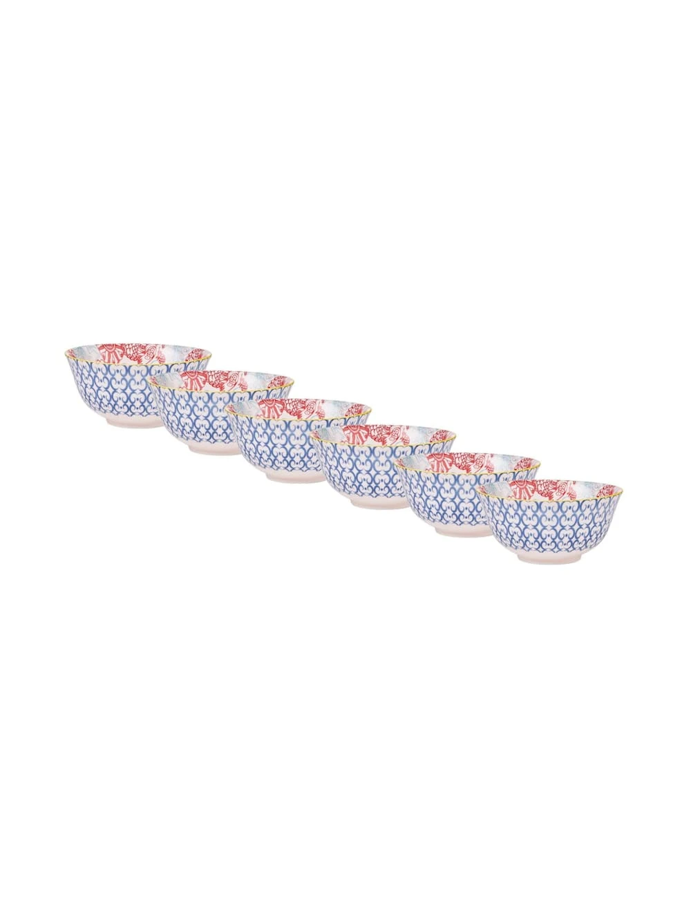 Schale mit Stil: Das bunte Ornaments-Geschirr passt in jede moderne Küche und ist ein stylischer Blickfang auf Ihrem Esstisch. In dieser blau-roten gemusterten Porzellanschale im 6er-Set können Sie Ihren Gästen leckere Kleinigkeiten servieren. Vielseitig einsetzbar: Als Müslischale, als Suppenschale, für Süßigkeiten, Chips und andere Snacks. In verschiedenen Varianten und Größen erhältlich.
