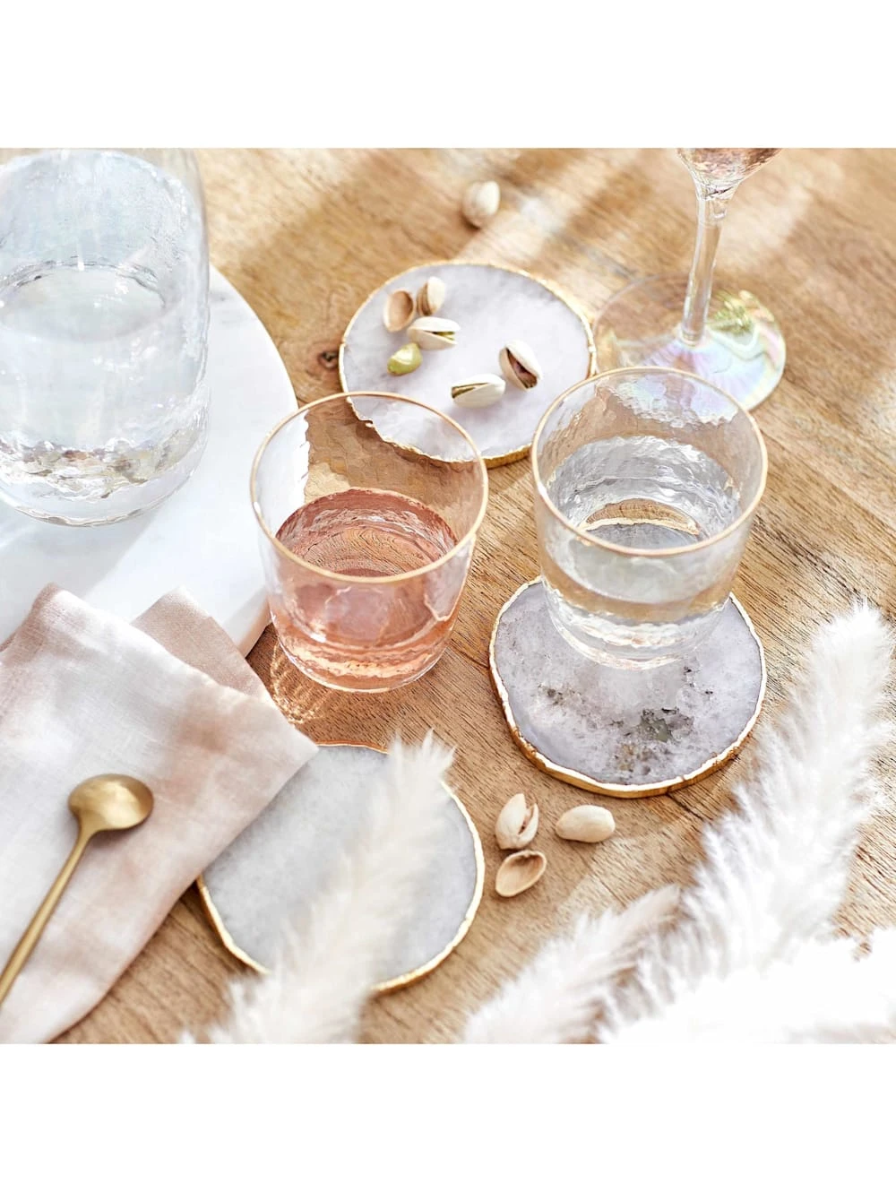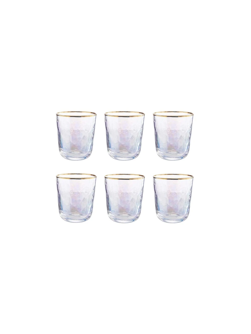 Wie die Perle einer Auster schillert auch das Smeralda Wasserglas im 6er-Set mit Goldrand im zarten Perlmutt und weckt so echtes Fernweh nach Meer und Strand. Aber auch für den Urlaub zuhause ist das transparente Wasserglas mit leichter Oberflächenstruktur ein echter Hingucker. Kombiniert mit typischen maritimen Accessoires, wie Muscheln oder Deko-Fische und phantasievollem Geschirr holen Sie sich das Mittelmeer ganz einfach nach Hause. Zusammen mit den passenden Champagnerflöten und Weingläsern ist der Strand-Look komplett.
