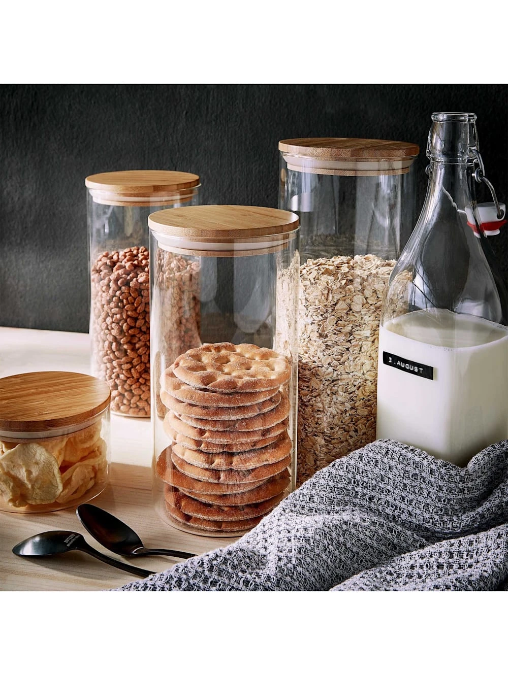 Das moderne Woodlock Vorratsglas 1750 ml mit Bambus-Deckel setzt auf hochwertiges Borosilikatglas, das auch im Labor für seine unempfindliche Art gegenüber Temperaturschwankungen und chemische Einflüsse geschätzt wird. Sogar in der Raumfahrt hat sich dieser Werkstoff bewährt, so dass Sie ihm Zucker, Mehl & Co. bedenkenlos anvertrauen können. Verschiedene Größen erhältlich.